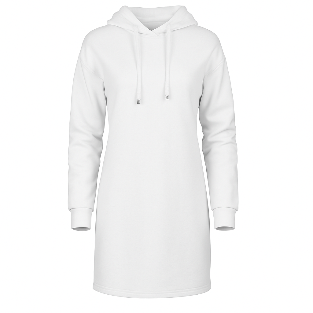 A modern take on casual comfort, this ecru hoodie dress is made from a soft cotton-elastane jersey that feels structured yet comfortable. The relaxed fit, long sleeves with ribbed cuffs, and adjustable hood with drawstrings create a minimalist silhouette that works for both at-home lounging and city wear. The clean finish at the hem adds a polished touch, making it an effortlessly versatile wardrobe essential.