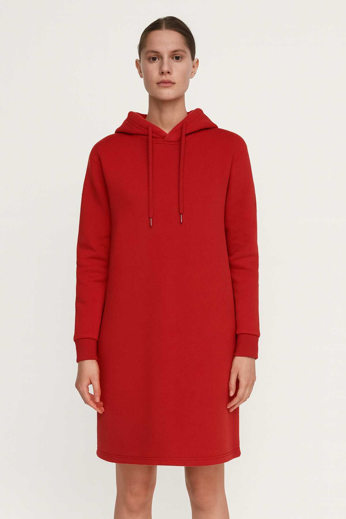 Red Cotton-Blend Hoodie Dress