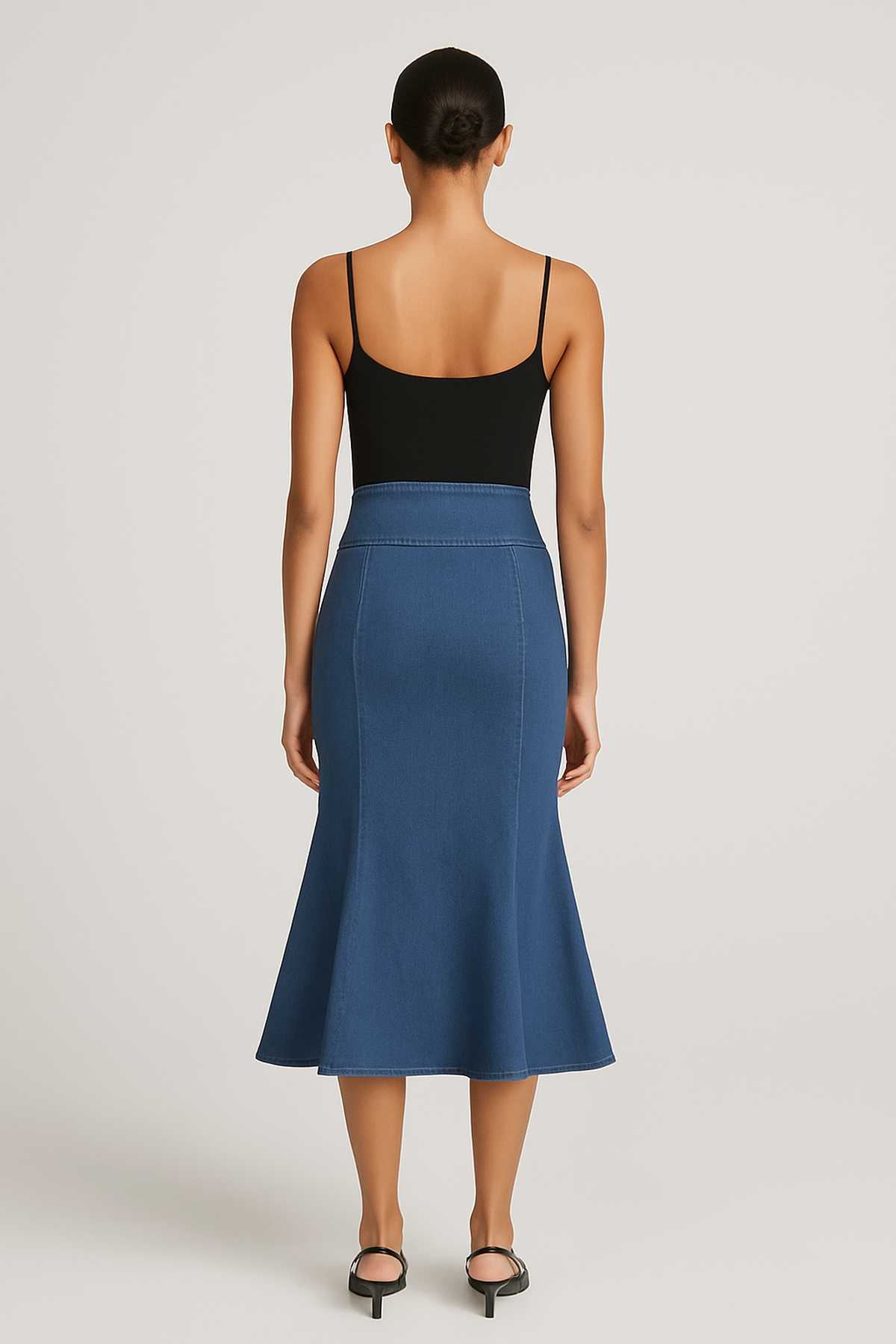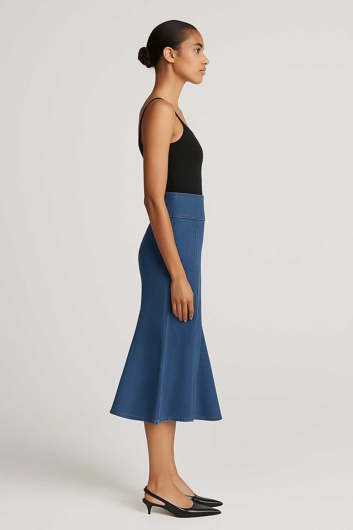 A softly structured midi skirt crafted from 100% woven lyocell. Designed with a high waist and panelled construction, it falls to a flared hem that moves with ease. Smooth to the touch with a refined drape, this piece combines comfort and modern simplicity.