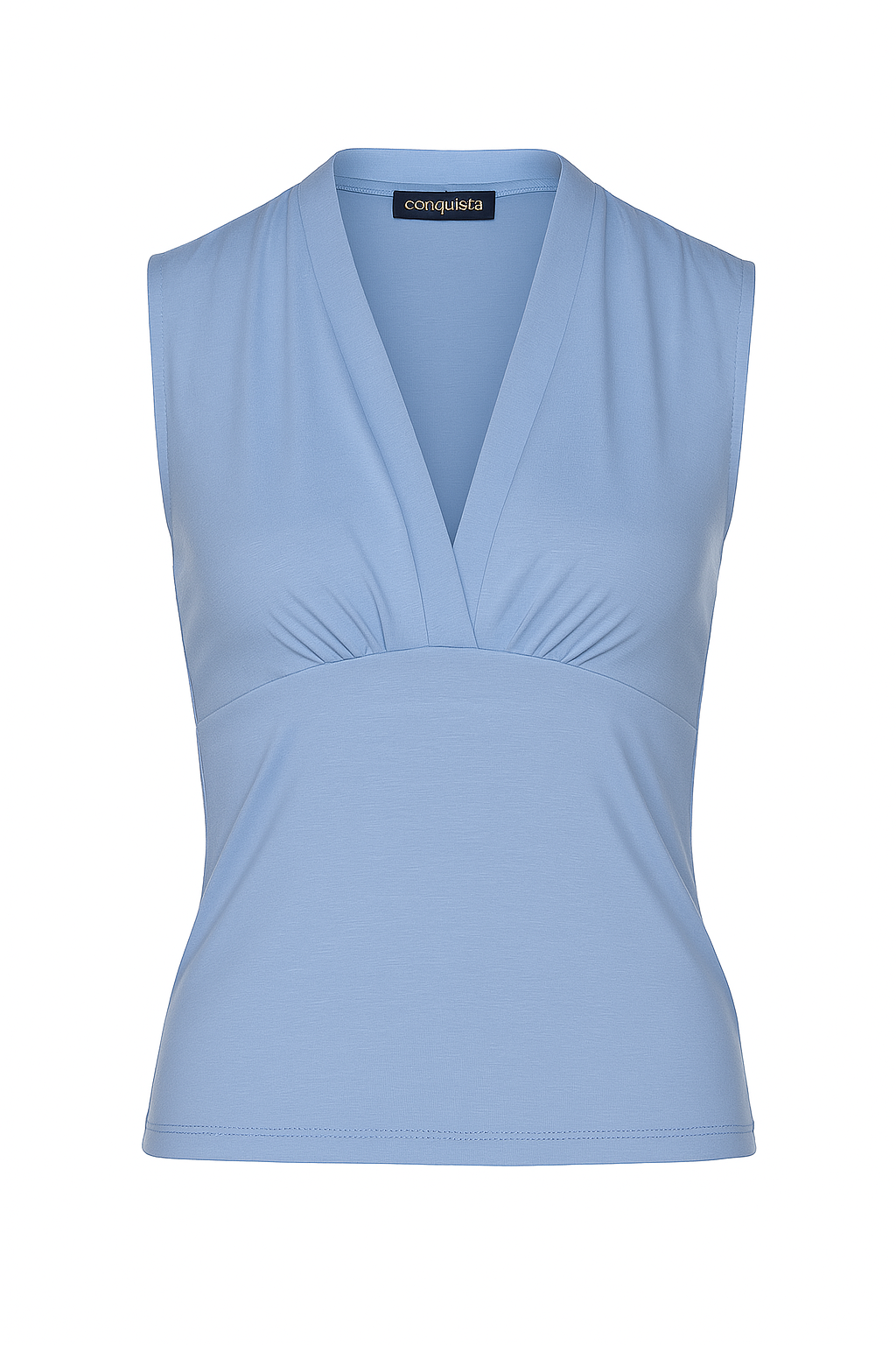 Μπλούζα με V λαιμόκοψη και αμάνικο σχέδιο σε μπλε χρώμα – Μαλακό ύφασμα από μείγμα βισκόζης