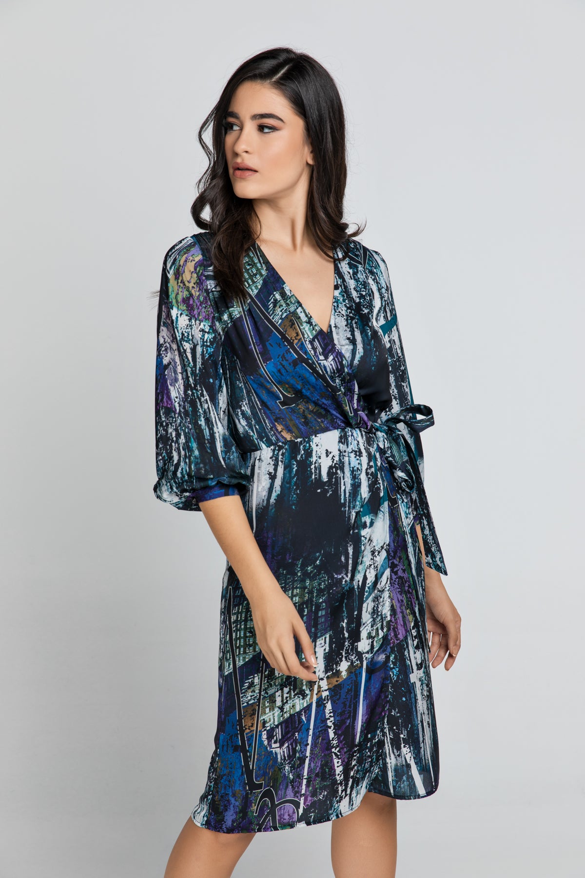 Μπλε φόρεμα με τύπωμα και κρουαζέ print