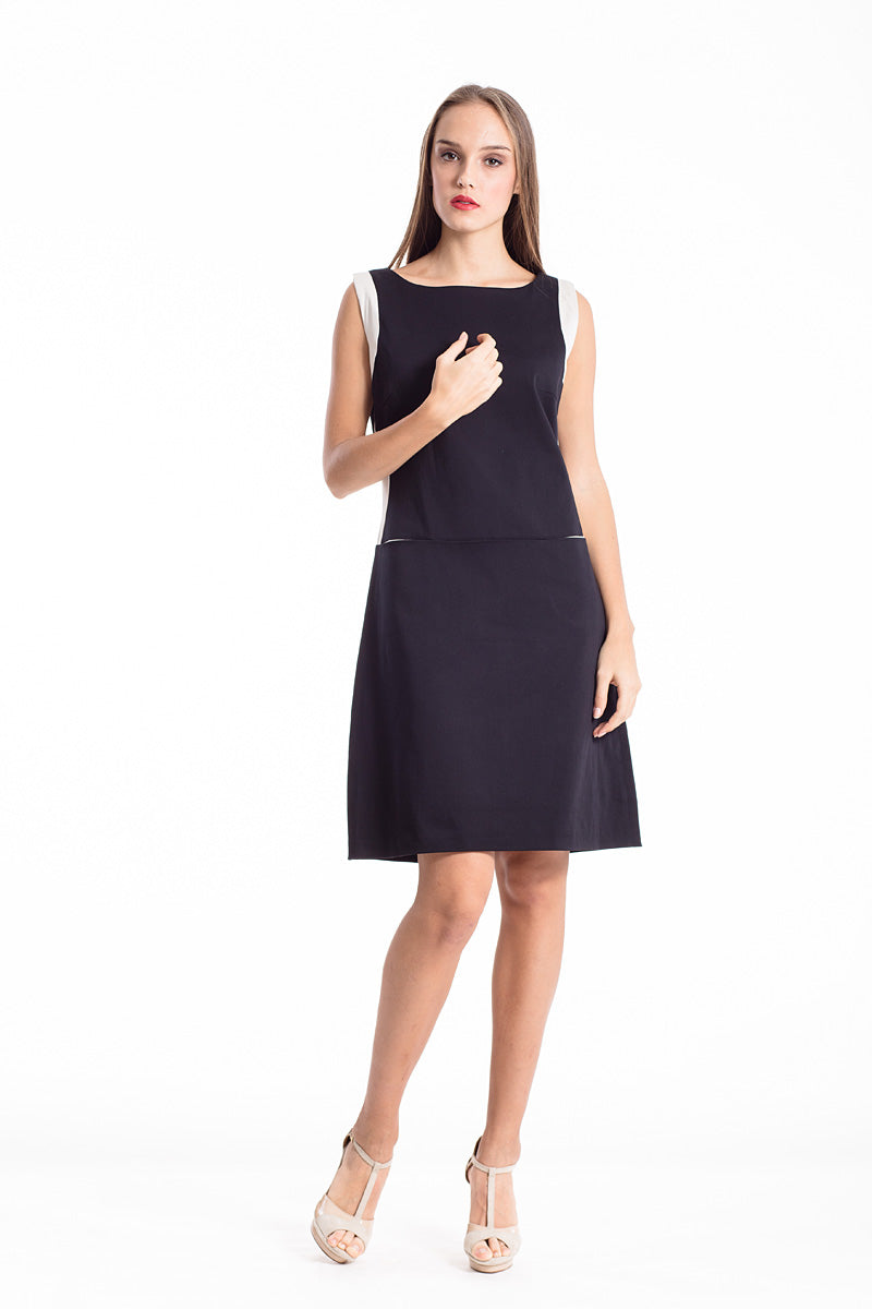 Crafted with contrast fabric detailing, this chic dress will infuse a touch of class into your closet this season. An A line silhouette flatters the figure making this dress a fabulously 'feel good' frock! Model shown is 178cm and is wearing size 36/S.