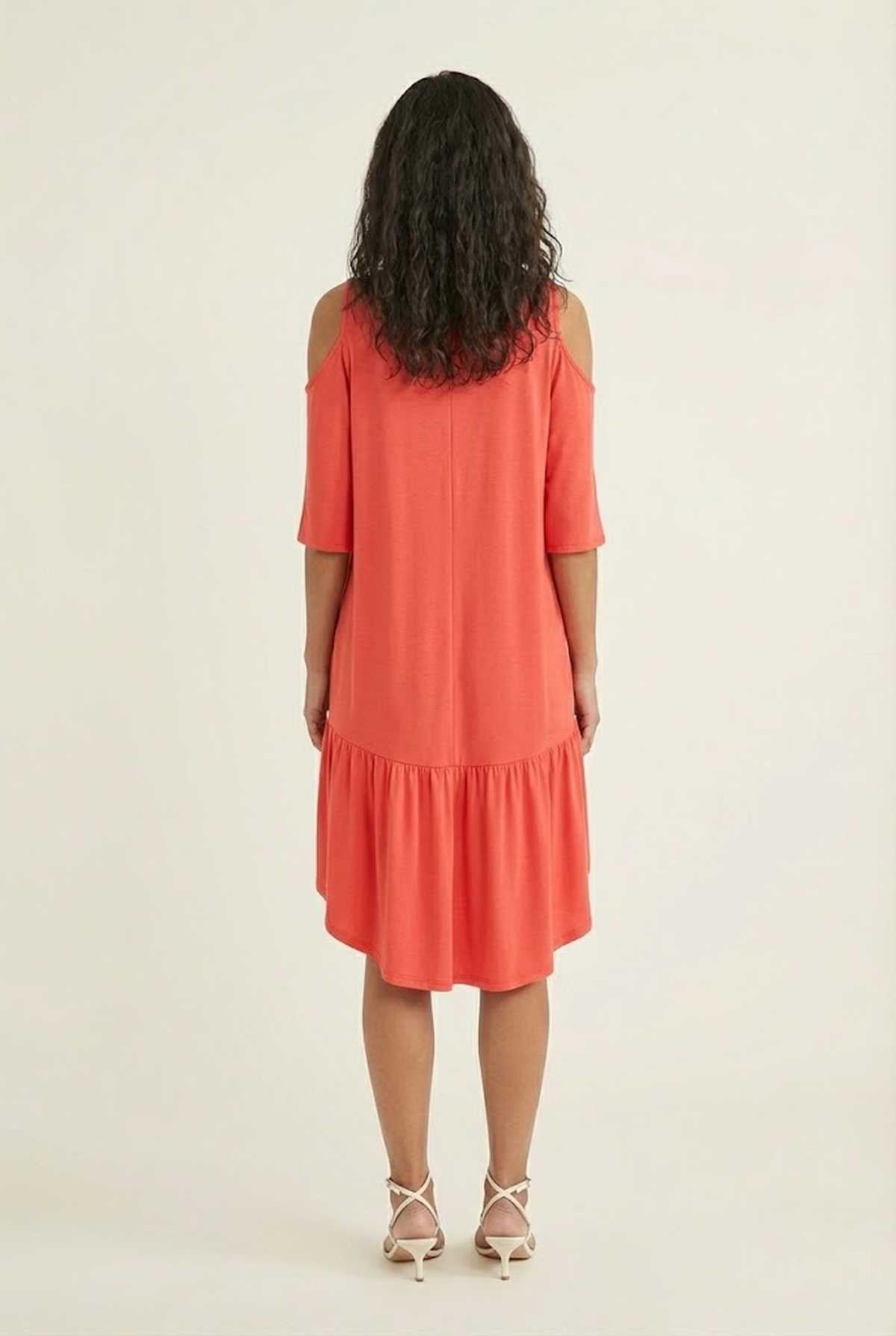 This flowing cold-shoulder tunic is designed for effortless elegance, featuring a relaxed silhouette that drapes beautifully over the body and a modern high-low hem that adds movement and length. Crafted from a soft, lightweight fabric, it offers all-day comfort while the wide scoop neckline and subtle gathered panel create a flattering, feminine shape. Perfect for versatile styling, this tunic pairs seamlessly with leggings, slim trousers, or shorts, making it an ideal choice for casual days, travel, or polished everyday looks.