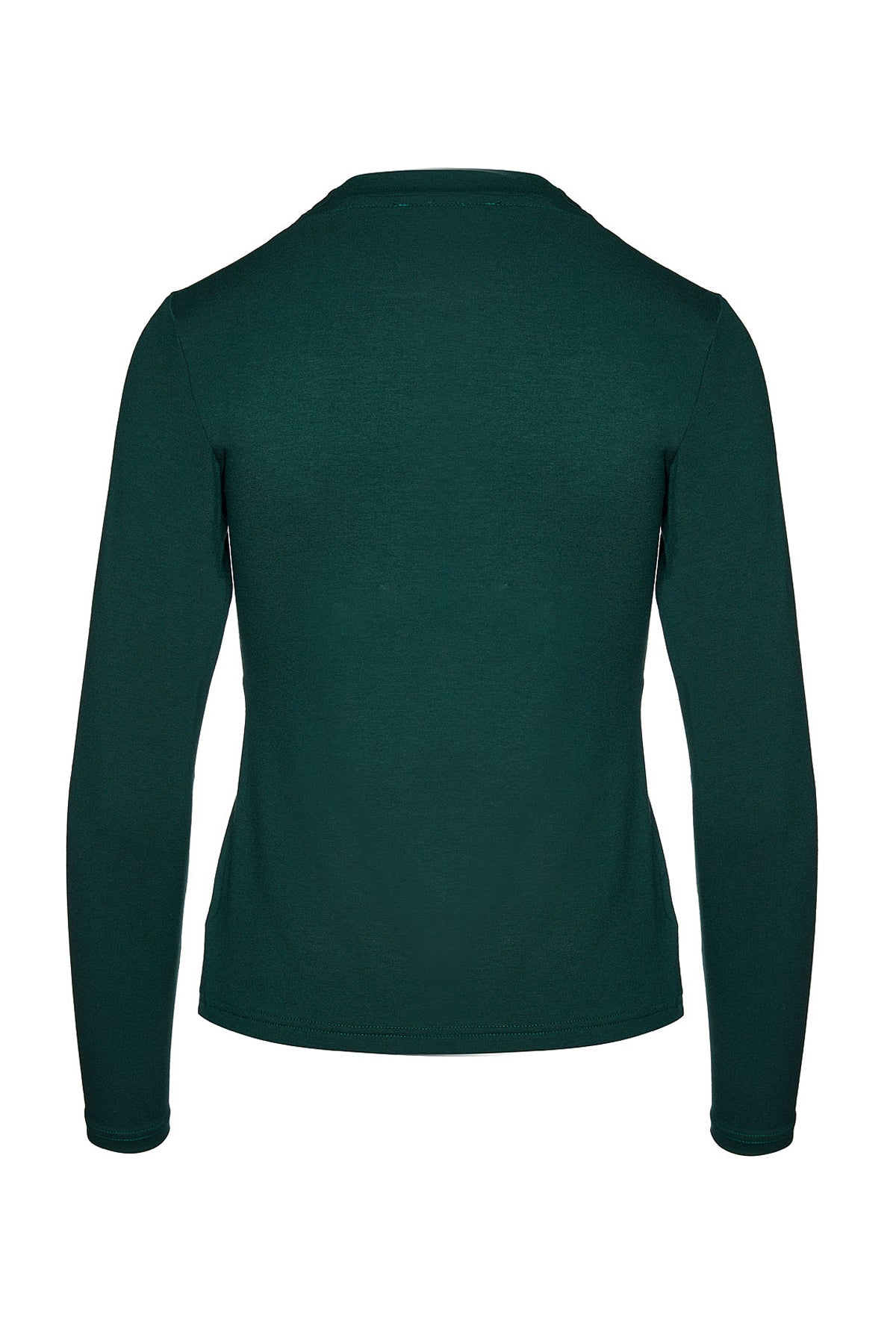 Green Long Sleeve Faux Wrap Top in Stretch Jersey Sustainable Fabric