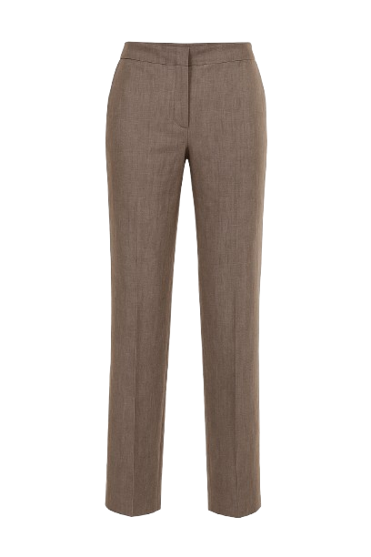 Cool and fresh, crisp and lightweight linen pants are an essential warm weather staple and you'll simply adore this easy-to-wear pair from Conquista. Lightweight linen fluidly drapes from the waist down into an elegant wide leg silhouette ensuring the ultimate in comfort and style. Zip and button front closure. Model shown is 178cm and is wearing size 36/S. Trousers CONQUISTA in brown linen fabric, button and zip front closure, mid rise and wide long leg.