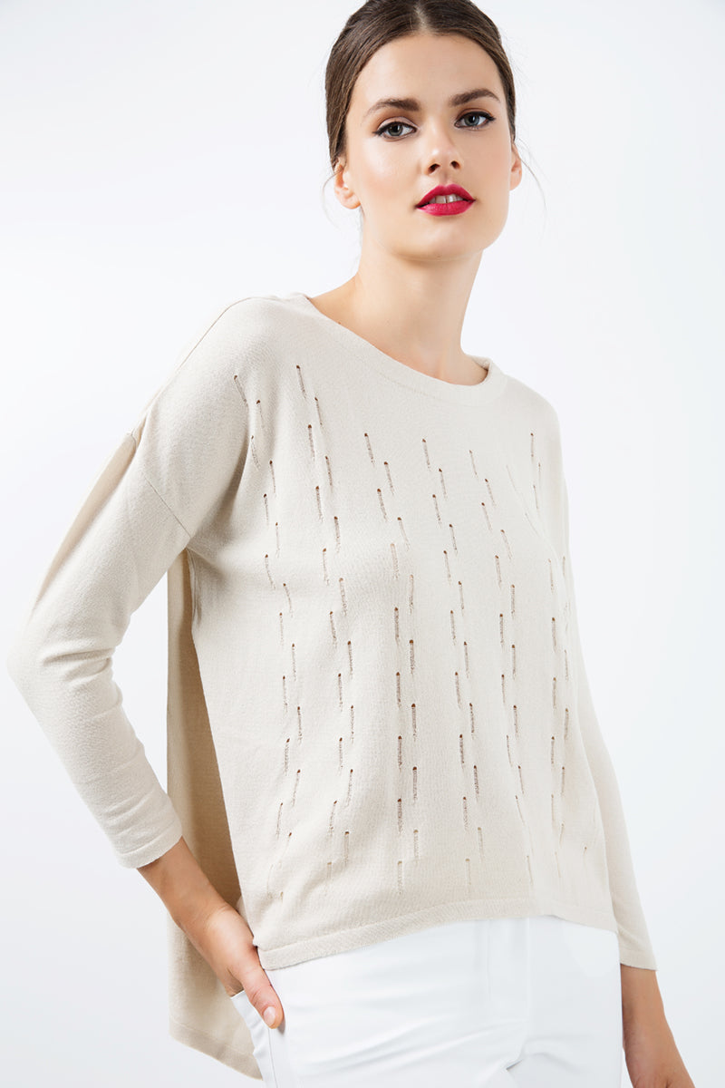 Long Sleeve Knit Top with Uneven Hemline